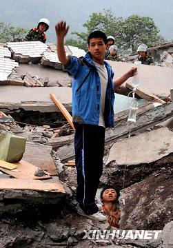 核心提示:汶川大地震發生時,北川中學一名叫廖波的學生因埋得較深,不能立即救出來,醫務人員給他輸液。李陽守候在一旁,為廖波托起輸液瓶,并一直鼓勵他。這個畫面感動了許多人,李陽因此被稱為“吊瓶男孩”。近日,李陽被免試保送上海交通大學。