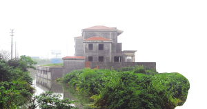 只見一排水泥建筑沿河而立,盡管只有三層樓,但層高明顯高于普通的住宅,毫不亞于民房的四層樓。在周圍綠化的掩映之下,這些別墅顯得頗為幽靜。盡管尚未進行裝修,但已經(jīng)成形的水泥框架和墻體,已經(jīng)能看出這些樓宇的不凡氣度,寬闊的樓梯不是一般的別墅所具備的。